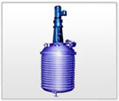 反應鍋由鍋體、鍋蓋、攪拌器、電加熱油夾管、支承及傳動裝置、軸封裝置、溢油槽等組成,并配有電加熱棒及測溫、測壓表